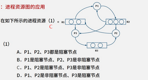 4、资源共有三个资源,分别给三个进程分配资源后没有剩余资源了,此时进程1又向资源申请资源,就会无法获得运行资源,就会进入等待态(