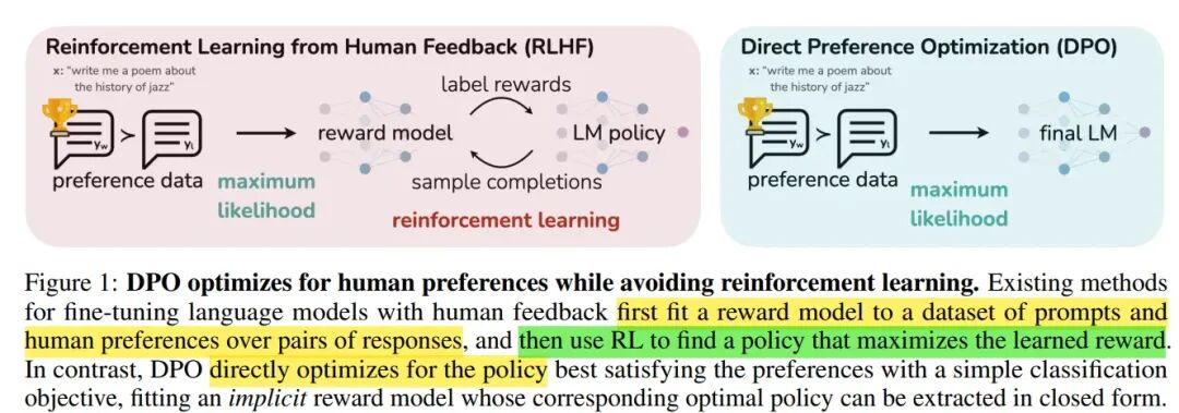 这些问题让 RLHF 成为大模型训练中最“烧 GPU”的环节之一。于是研究者开始思考:有没有办法跳过强化学习那一步,直接学到相同的偏好?