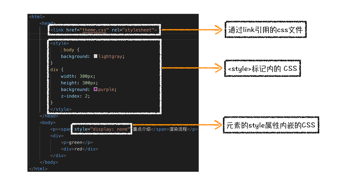 <style>标记内的 CSS- 元素的style属性内嵌的CSS