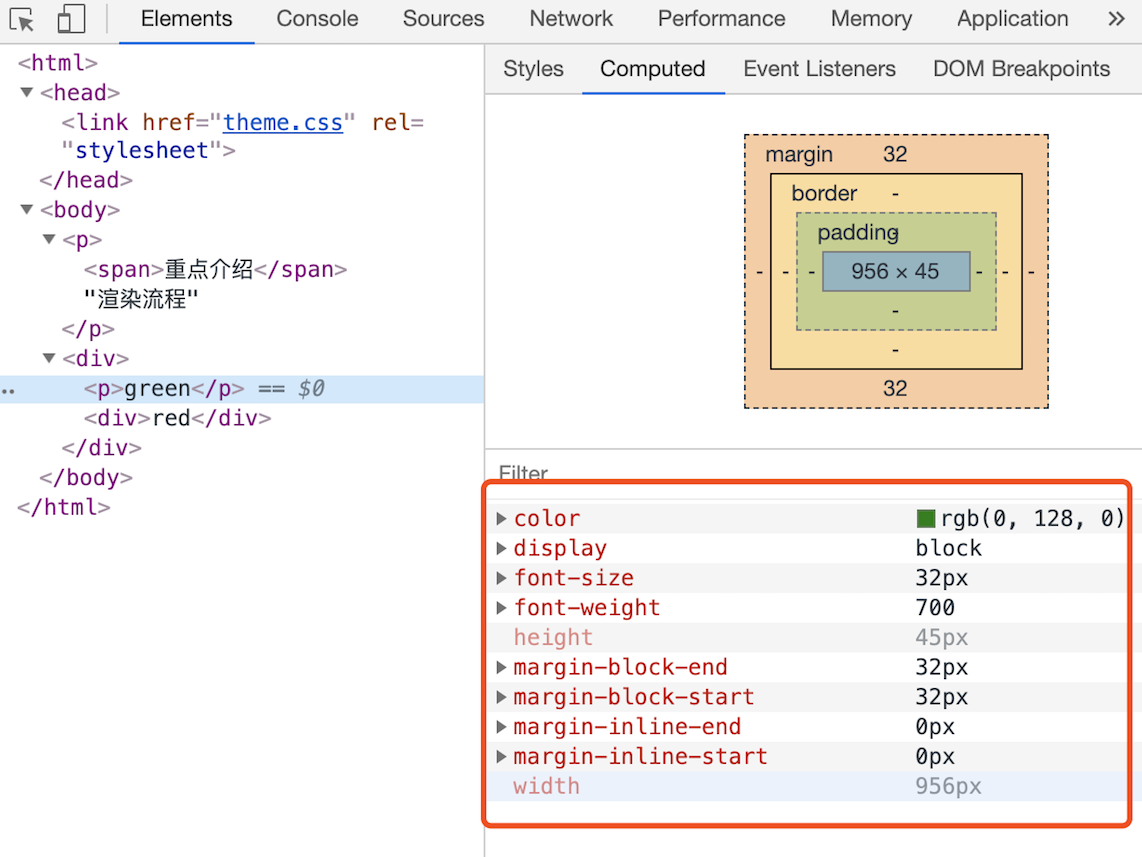 从图中可以看到,2em被解析成了32px,red被解析成了rgb(255,0,0),bold被解析成了700……