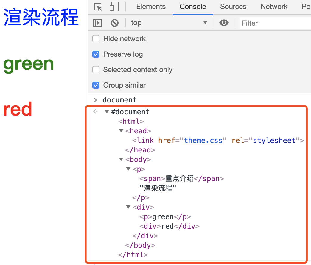 图中的document就是DOM结构,你可以看到,DOM和HTML内容几乎是一样的,但是和HTML不同的是,DOM是保存在内存中树状结构,可以通过JavaScript来查询或修改其内容。