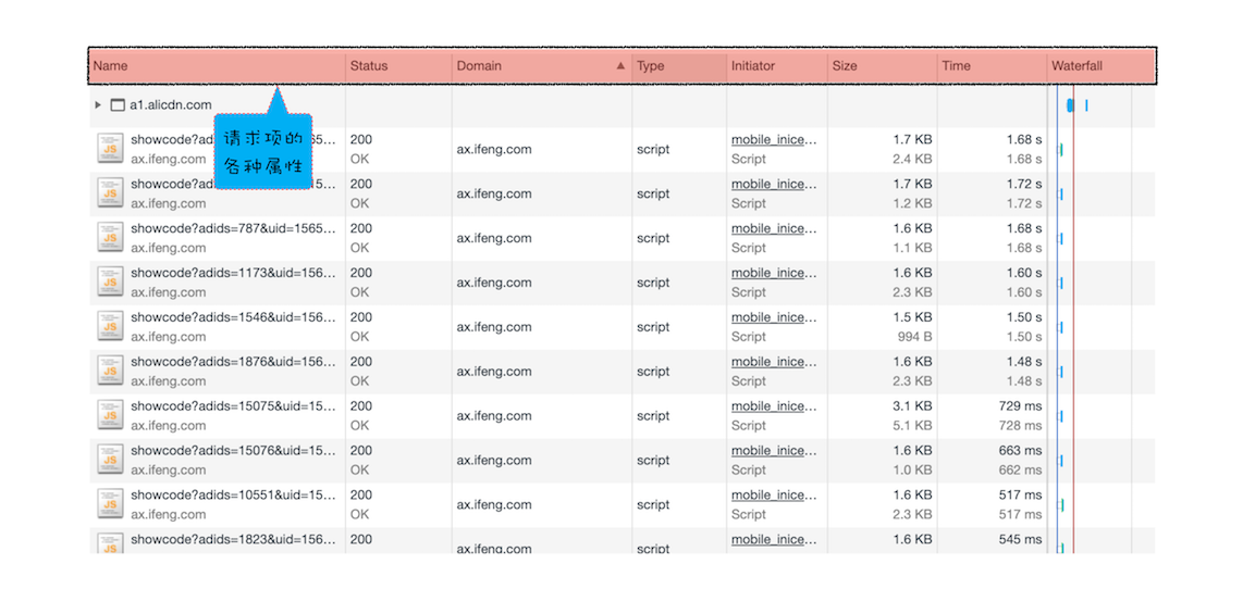 下面我们就来重点介绍网络面板中的详细列表,这里面包含了大量有用的信息。