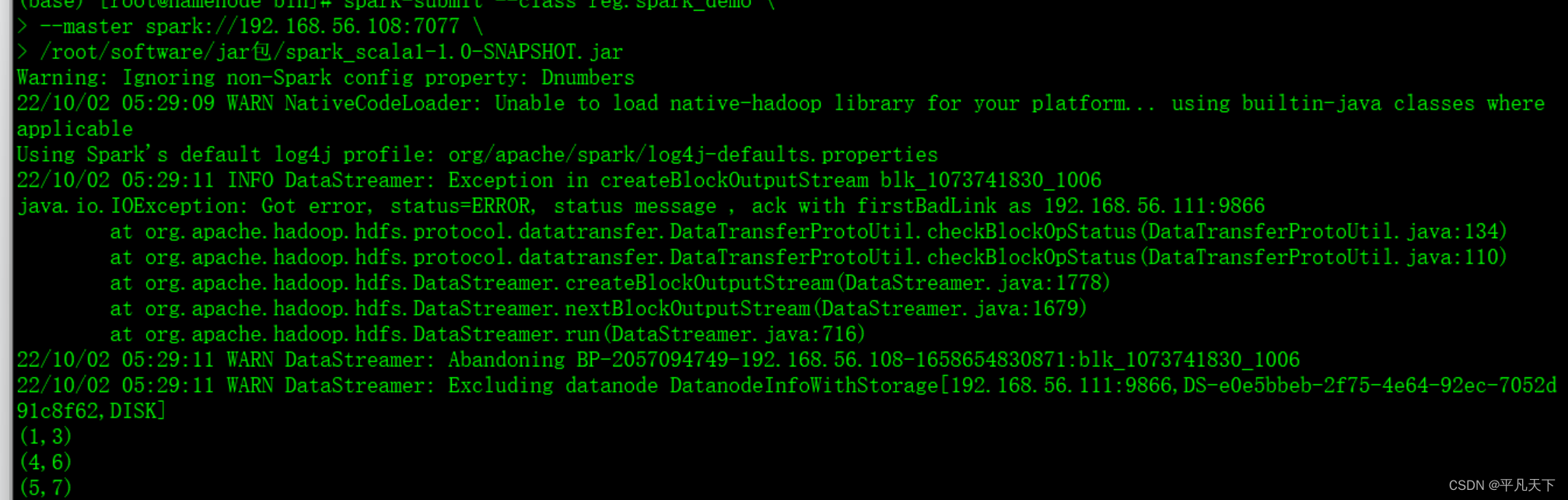 对于以上命令可以在集群任何位置执行,其中自己也可以设定内存以及参数传入,还有一个问题就是类一定要将对应的包名加上,我的包名是reg
