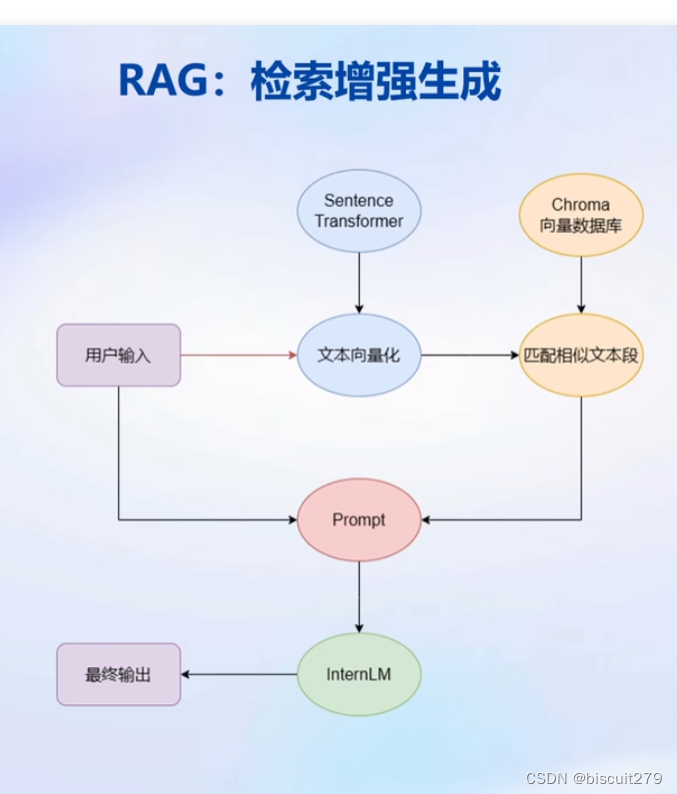 书生·浦语大模型实战营笔记-第三节 基于 InternLM 和 LangChain 搭建你的知识库 介绍基于基于 InternLM 和 LangChain 搭建知识库的概念、思路和步骤LangChain是为LLM提供通用接口,用来简化开发流程核心组成模块是Chains:用于将组建组合实现端到端的应用下图展示了基于LangChain搭建RAG应用的步骤主要学习了大模型开发的RAG范式,并基于LangChain工具实现了一个检索问答的demo。