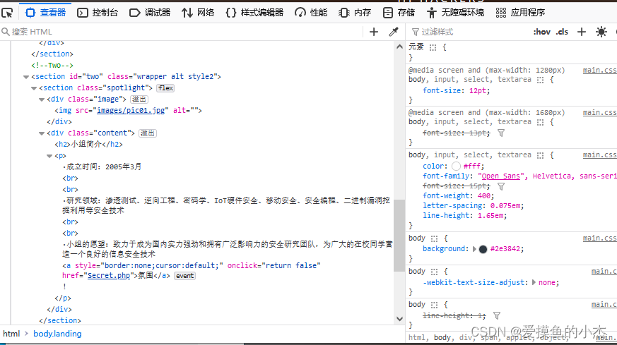 仔细查看发现在下面出现了secret.php文件,就是我们要找的之后直接访问