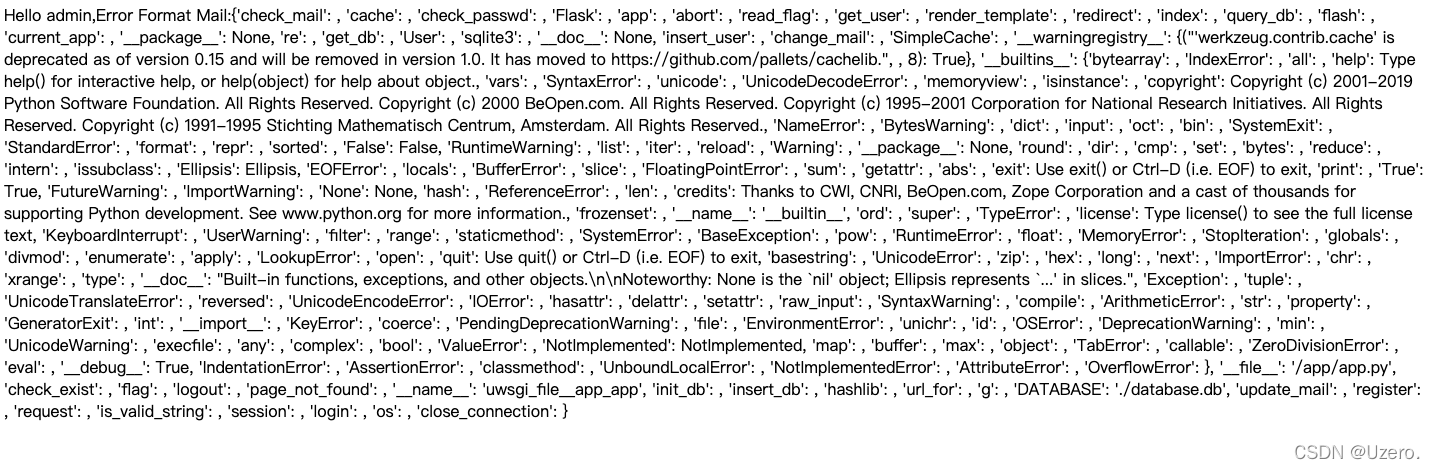 payload = "{'isadmin': 1, 'user': (1, 'admin', 'admin@qq.com')}"