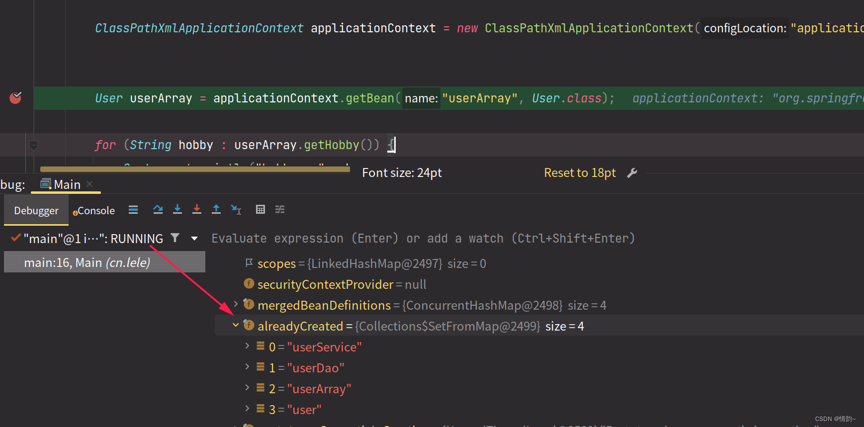 所以当我们获取bean时,会根据Scope属性,分为几种情况。下面来观察一下源码。首先还是和上面一样看能比能在单例池中获取到这个对象,获取不到直接进入后面的方法。这个方法便是获取的bean是属于哪种scope,进而继续判断,下面分段解析。如果在单例池获取到了当前获取的bean,就直接返回了。在容器加载完的时候,单例的bean都已经被解析为。这里又调用了doGetBean方法,没什么好说的。先看看要创建的bean,是否依赖了别的bean。并且,单例bean被初始化并且存储在。