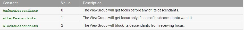 afterDescendants:viewgroup只有当其子类控件不需要获取焦点时才获取焦点