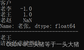 运行结果(你会发现 比如老张对老赵的相关系数是空值,可是明明min_period=1,按理来说他们之间应该存在相关系数。那么是什么原因呢?由于皮尔森相关系数公式定义中,分母是两个方差相乘,而在计算老张老赵的相关系数的时候,数据为[8],[3],只有一个数值,那么方差就为0,导致皮尔森相关系数的分母为0,就出现了空值。当然还有其他时候也会出现空值,看这里):