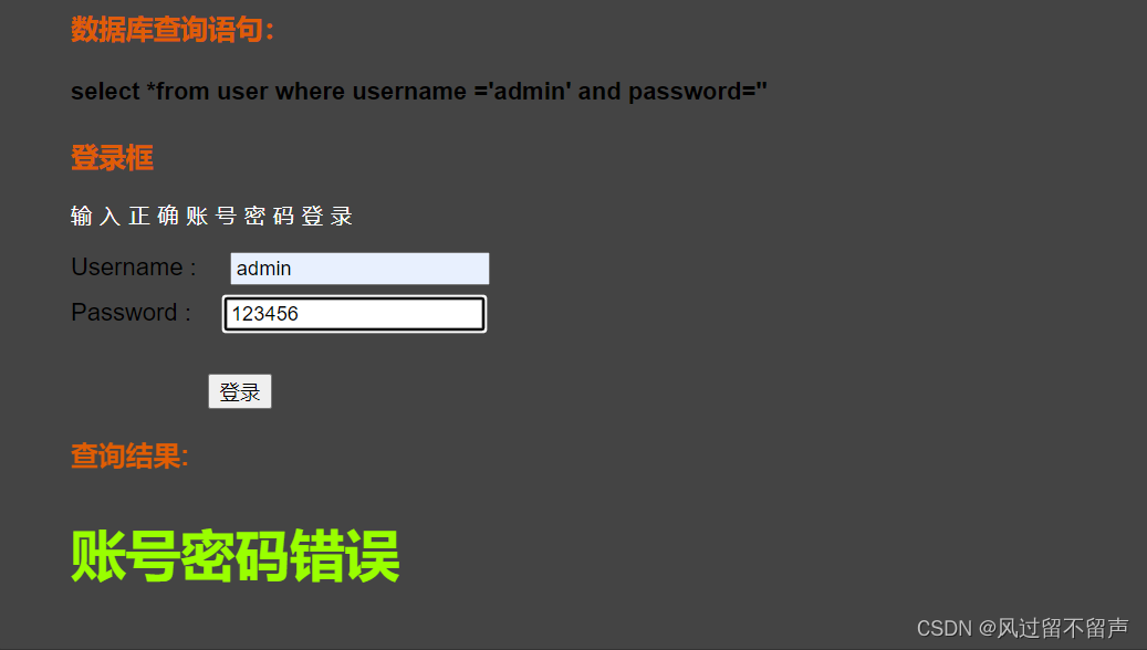select *from user where username =‘’ and password=‘’