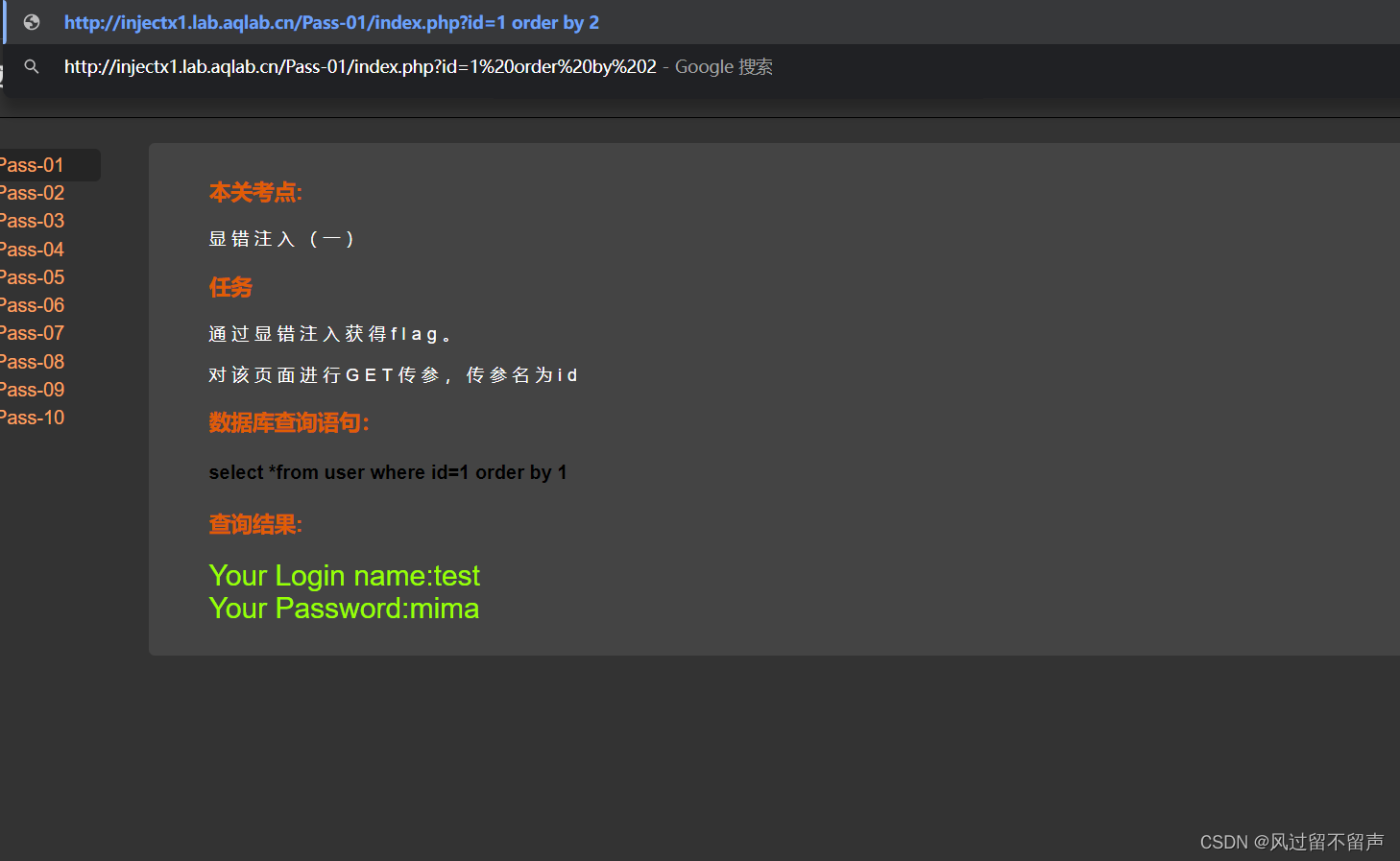 第一关:select * from user where id=1