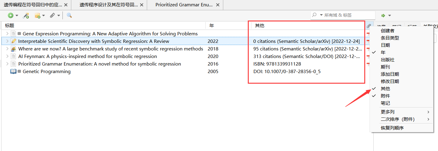 - 拉取文献引用次数以及是否是核心期刊,在元数据的『其他』字段显示