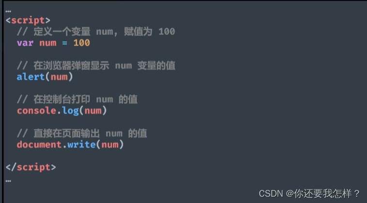 <script> var a=100 var b=a.toString() console.log(a,b)//在控制台输出100 '100' </script>