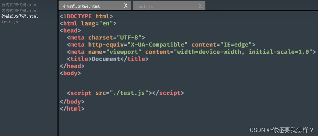 (三)外链式-把代码书写在一个.js后缀文件内(最推荐)