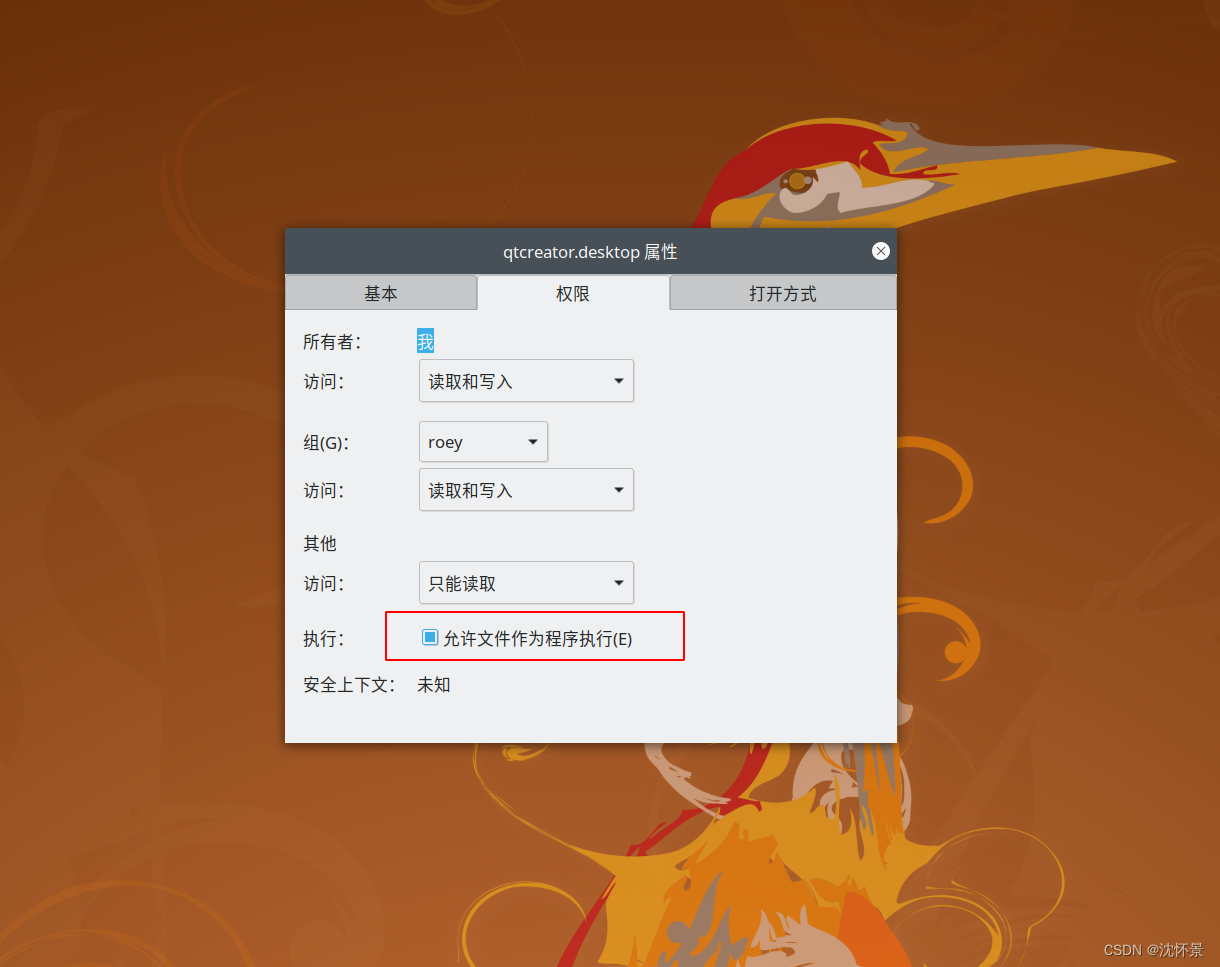 3.保存文件后,将其设置允许文件可执行