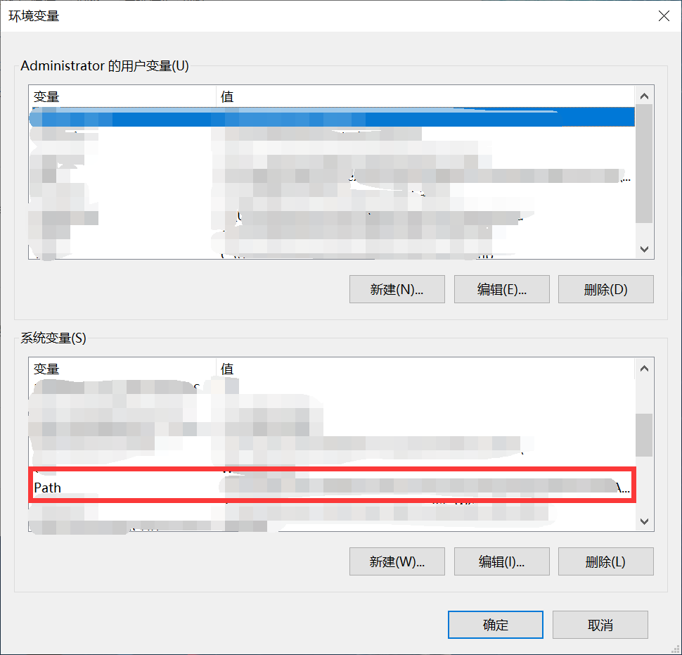 在系统变量(一定要看清,是系统变量,不是用户变量)一栏中,找到“Path”(这个Path不同电脑的书写可能不一样,所以根据自己电脑上的来,我这里是Path,但其它的电脑可能在大小写上有区别)。