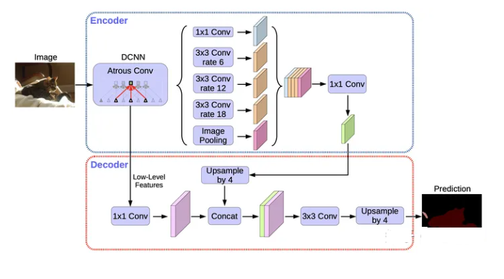 DeepLab v3+使用DeepLab v3作为Encoder,我们重点关注它的解码器模块。它分成7步: