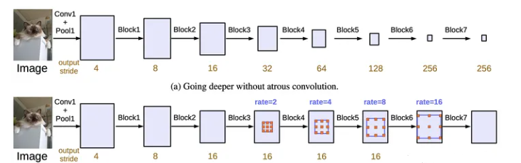 - 将步长为2的max-pooling替换为深度可分离卷积,这样也便于随时替换为空洞卷积;
