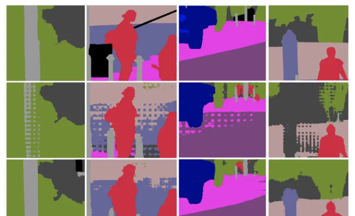 Gridding产生的原因是因为连续的空洞卷积使用了相同的扩张率。在图6.(a)中,连续使用了三个 r=2 的空洞卷积,那么对中心点分类结果的影响则源自于周围分连续的像素点。HDC的原理是对连续的空洞卷积使用不同的扩张率,如图6.(b)中使用的扩张率依次是 (1,2,3) ,那么影响中心点类别的则是连续的一个区域,因此也更容易产生连续的分割效果。同时因为使用了HDC后感受野变得更大了,一定程度上也可以提升模型的分割效果。