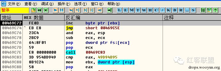 。因此在寄存器出栈时,往往程序代码被自动恢复,此时硬件断点触发。然后在程序当前位置,只需要少许单步跟踪,就很容易到达正确的OEP
