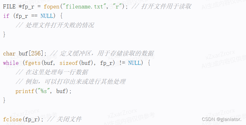fgets特点,从fp_r打开的文件中获取一行数据,每次只读一行(以换行符为标记),在插入数据库前通过此结构方便一行一行提取,此结构也可用于例如串口数据转为想要的类型。