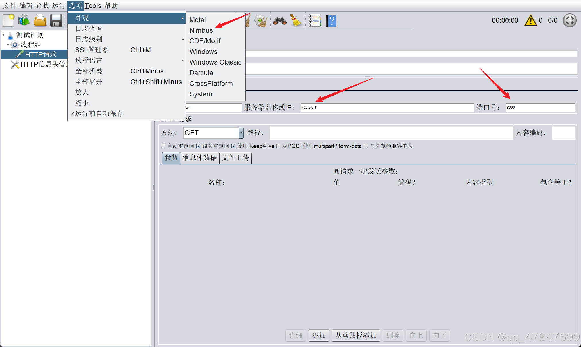 jmeter里面的url等输入框字体太小,怎么解决? 介绍下情况:初始jmeter页面是黑色,和大家初始下载页面一致,后续更改了jmeter-选项-外观-Nimbus过后,页面就变成这样,不知道怎么恢复初始化。但是配置文件保存退出后,再重新打开jmeter,页面还是这样,求怎么处理?