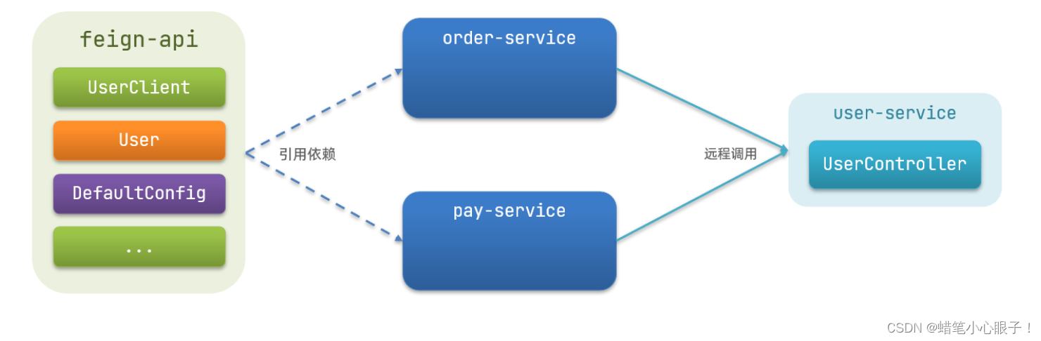 答案是肯定的;可以将Feign的Client抽取为独立模块,并且把接口有关的POJO,默认的Feign配置都放到这个模块中,提供给所有消费者使用;例如:将UserClient,User,Feign的默认配置都抽取到一个feign-api包中,所有微服务引入该依赖包,即可直接使用.