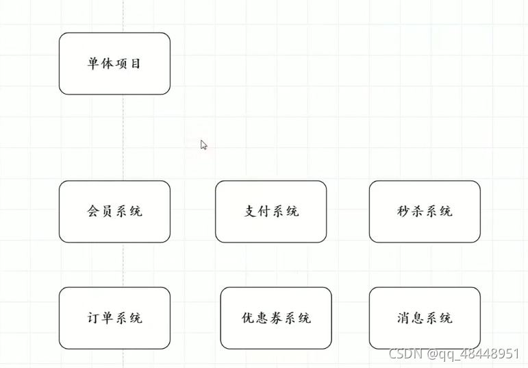 1.传统的单体架构简单理解为单点架构,就是我们经常写的SSM或者SSH的项目,采用分层架构模式。即数据访问层(dao层),业务逻辑层(service),控制器层(controller),从前端到后端所有的代码可以由一人完成。就是把项目的代码方到同一个项目中,部署在一个tomcat上面。优点:结构简单,部署简单 开发简单 运维简单缺点:代码耦合度高 项目启动慢 技术单一如果多人同时开发 ,会发生冲突 、所以这种耦合度不便于开发。只适用于小团队或者个人开发。某刻模块不可用,会导..