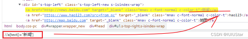 点击“百度一下”按钮(在form表单里,所以submit和click都可以使用);点击“新闻”按钮,因为这个按钮不在form表单里,所以只能使用click。