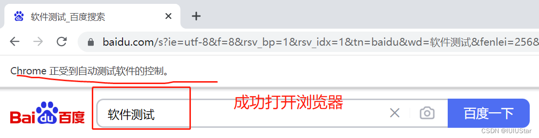 实现:打开百度首页并输入“软件测试”并点击“百度一下”按钮。
