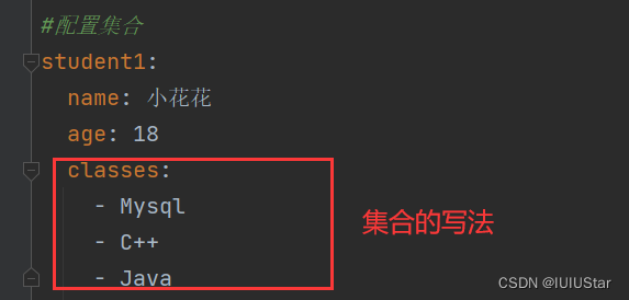 (5)配置集合并读取:和上面获取对象的方式一致,在,yml文件中集合的形式是:-加空格后面写具体内容。