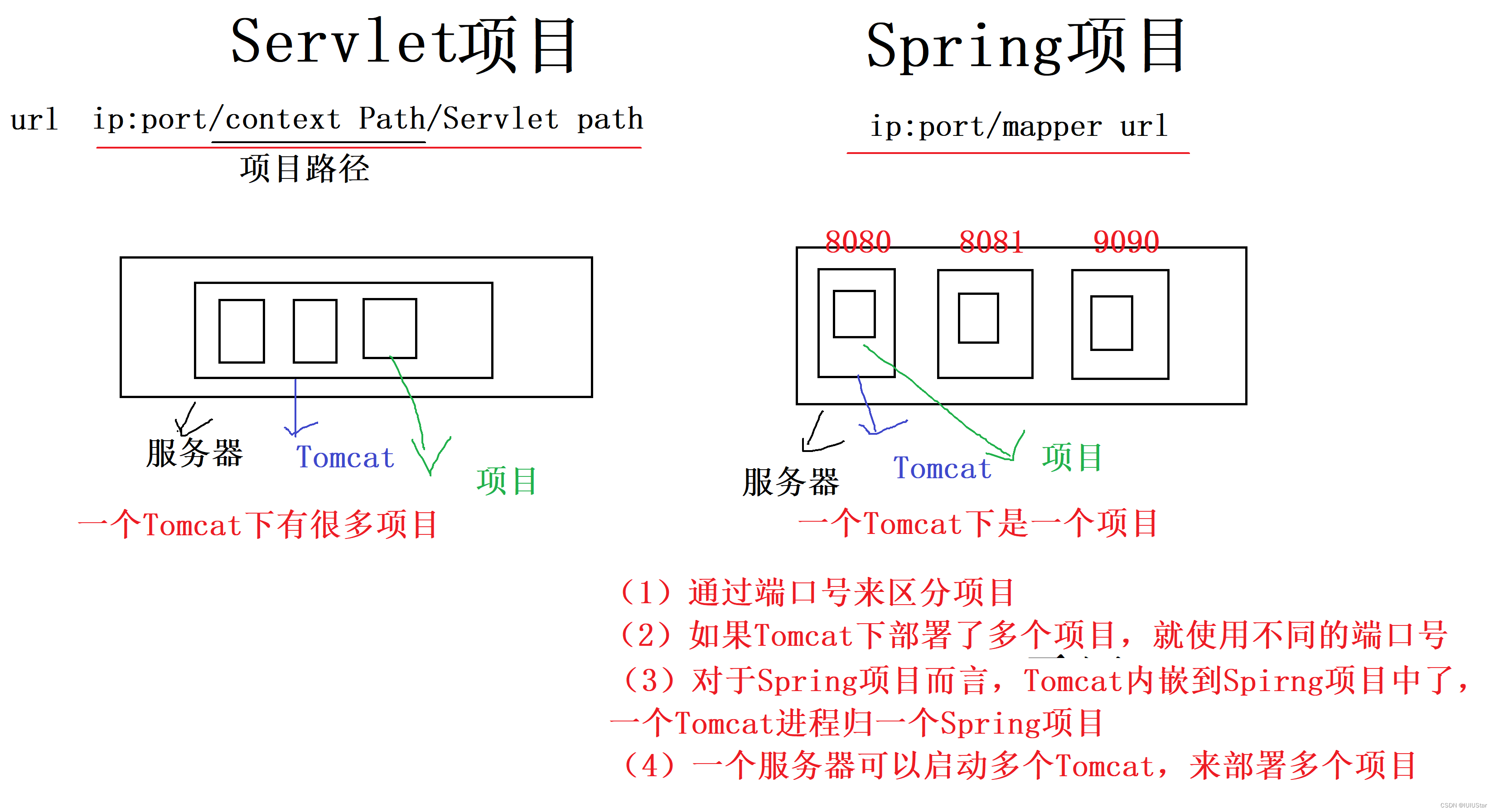 (2)内置运行容器:无序配置Tomcat和Web容器,直接运行和部署程序;
