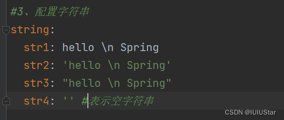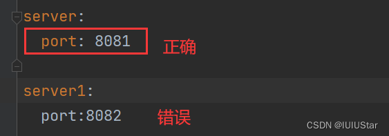 - properties 是以 key=value 的形式配置,⽽ yml 使⽤的是key 和 value 之间使⽤“: ”英⽂冒号加空格的⽅式设置,并且空格不可省略。