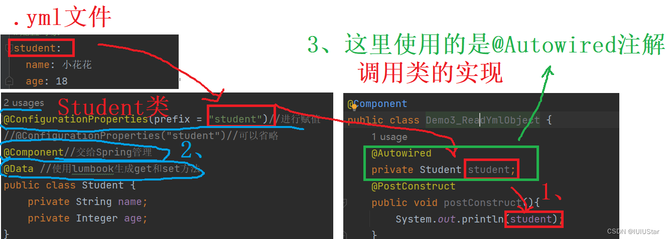 (4)配置对象并读取:使⽤注解@ConfigurationProperties 来读取+@Autowired