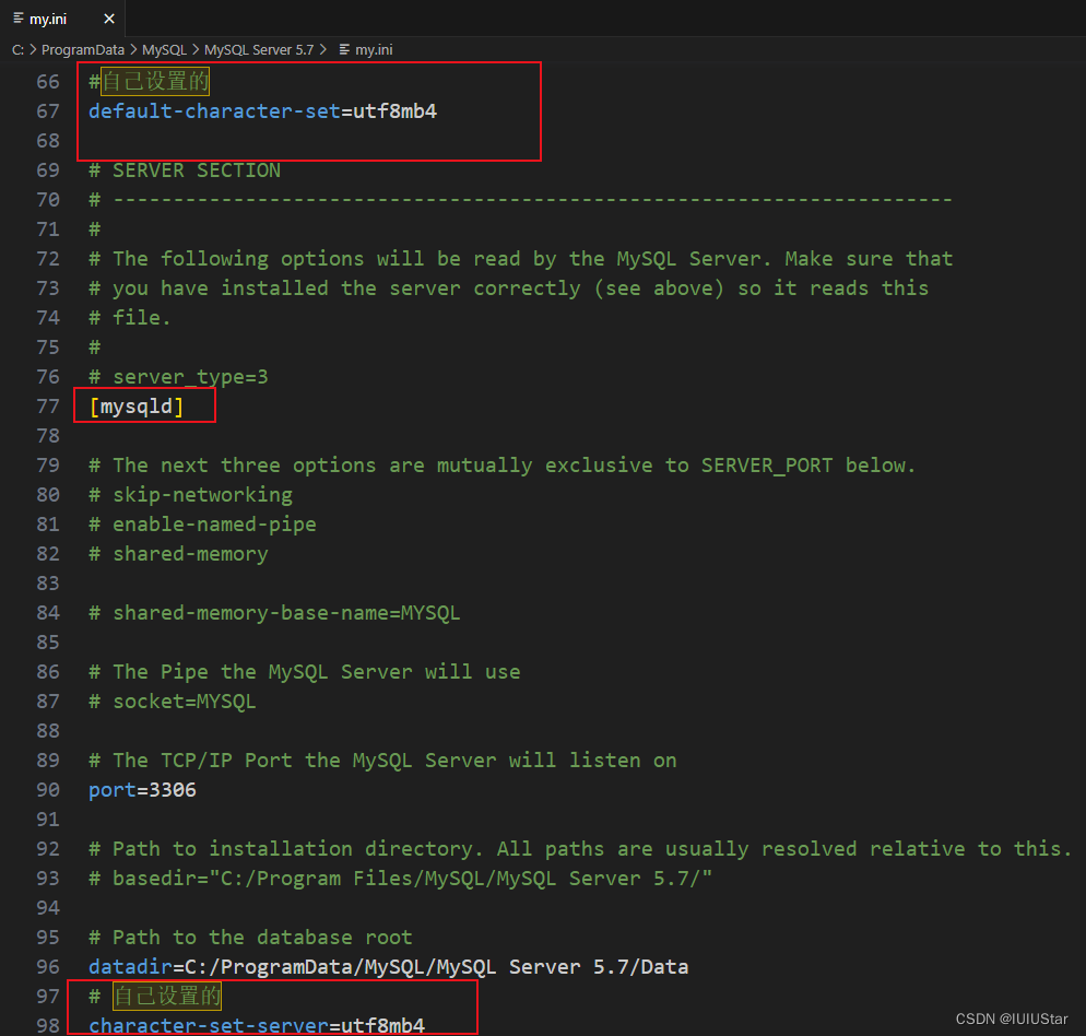(10)修改my.ini文件。默认路径在C:\ProgramData\MySQL\MySQL Server 5.7下。