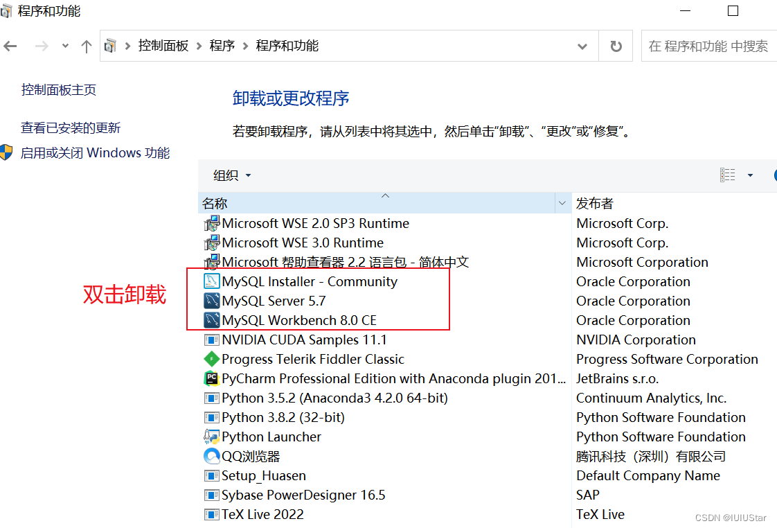 (2)控制面板,卸载程序,找到下面三个图标,双击卸载。
