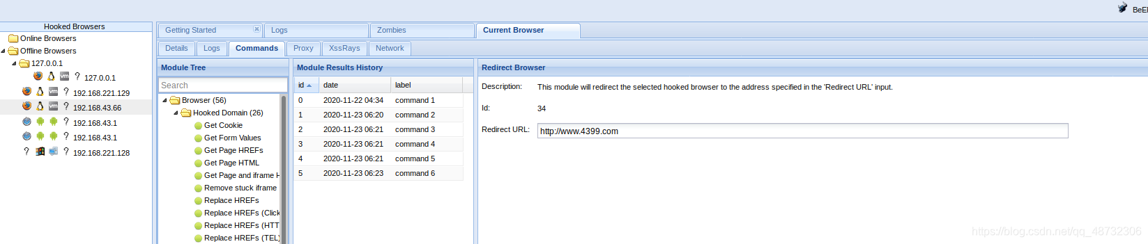 XSS部分:利用Beef劫持被攻击者客户端浏览器。