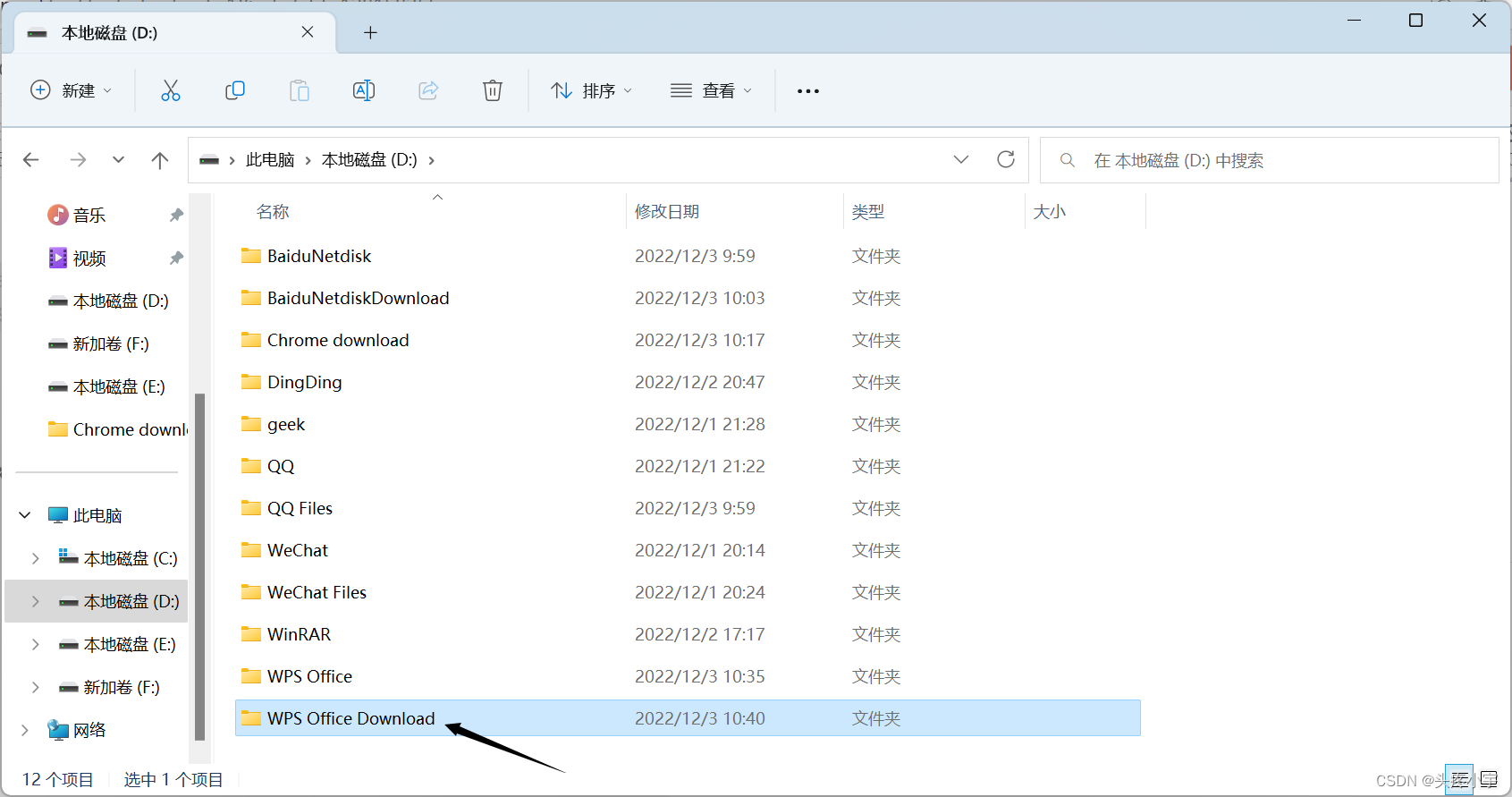 - 在 D 盘(除了 C 盘就行)创建一个文件夹,命名为: