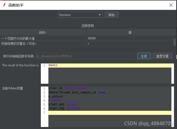 使用Random函数生成一个函数${__Random(111,222,r)} ,里面的这个r代表的就是你使用的函数随机生成的值。在下面的接口可以使用