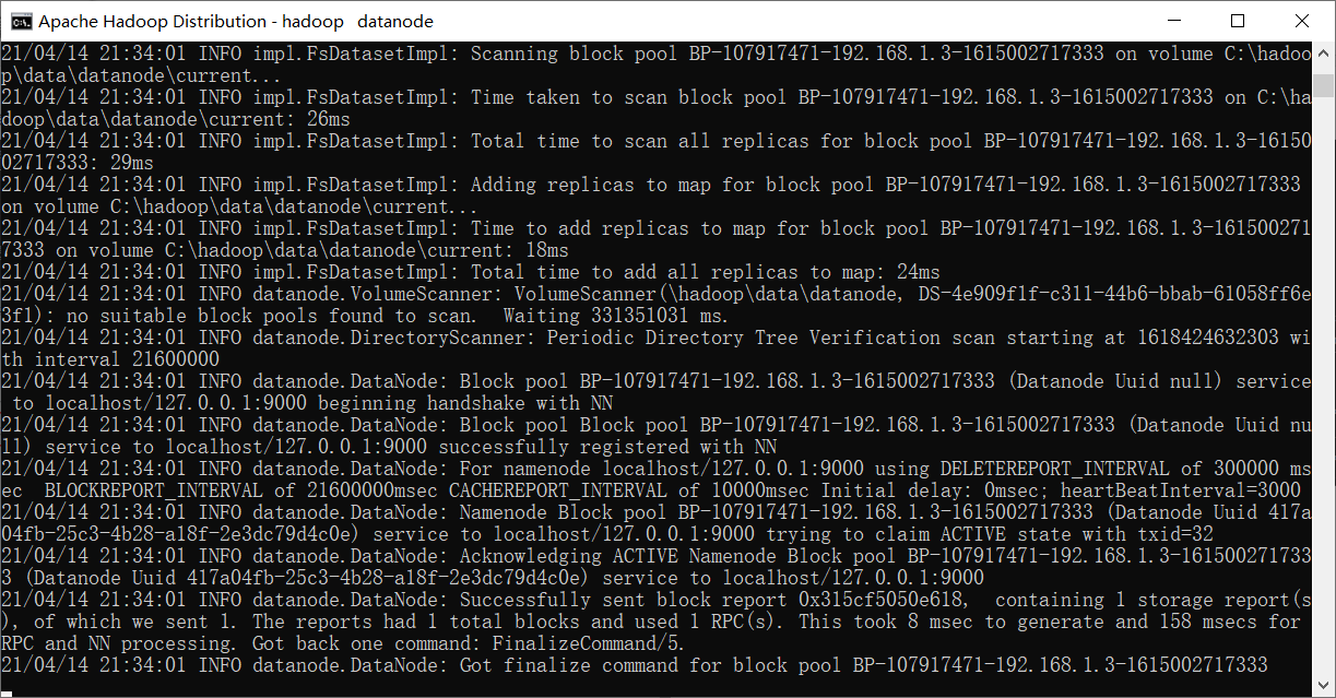 首先启动配置好的Hadoop平台,使用Hadoop文件夹中sbin子文件夹中的start-all,成功是4个节点都没有shutdown掉