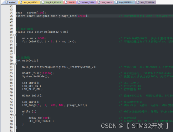 3-4 在要调用显示图片函数的文件中,添加下面如45行的声明: