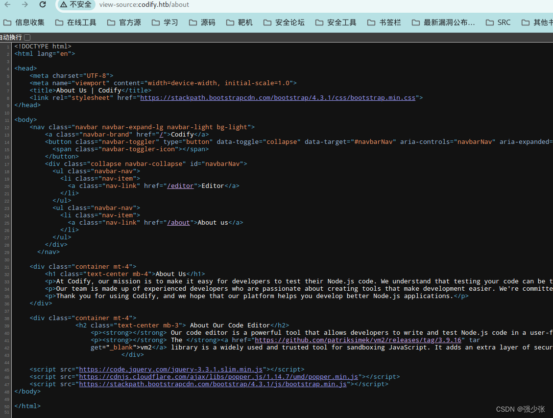 HTB | Codify vm2@3.9.16 中的沙箱逃逸 上传linpeas进行信息收集有一个数据库文件/var/www/contact/tickets.db。在其他wp 找到的破解root密码用python编写的脚本,使用gpt加上了注释使我更容易理解。可以看见这个是一个备份mysql的脚本,用户是root,这里需要验证root密码。将codify添加到hosts,访问80端口发现是vm2沙盒版本为3.9.16。在/var/www/contact/tickets.db发现一个hash。使用hashcat进行进行破解,先查找使用什么模式进行破解。