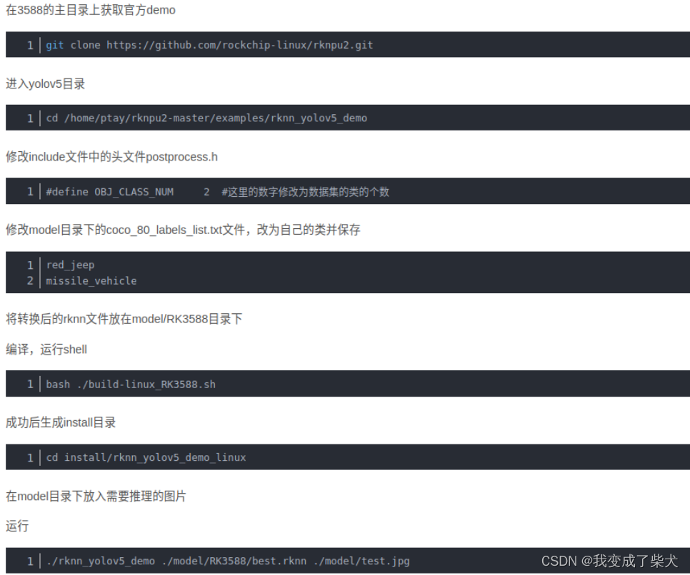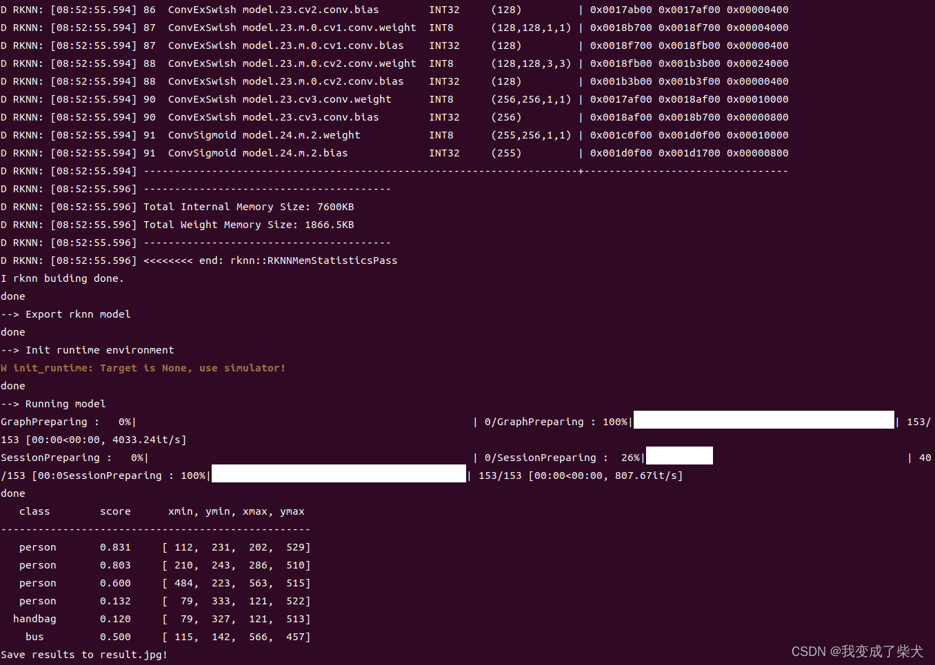f: 修改后 运行pyhton test.py 根目录会生成 .rknn的模型以及result.jpg