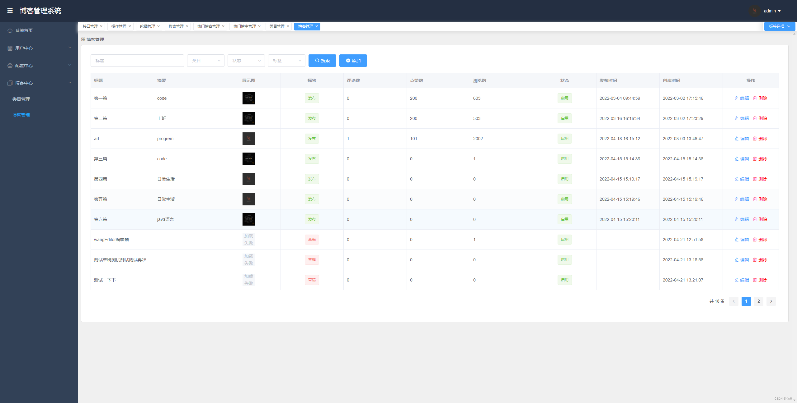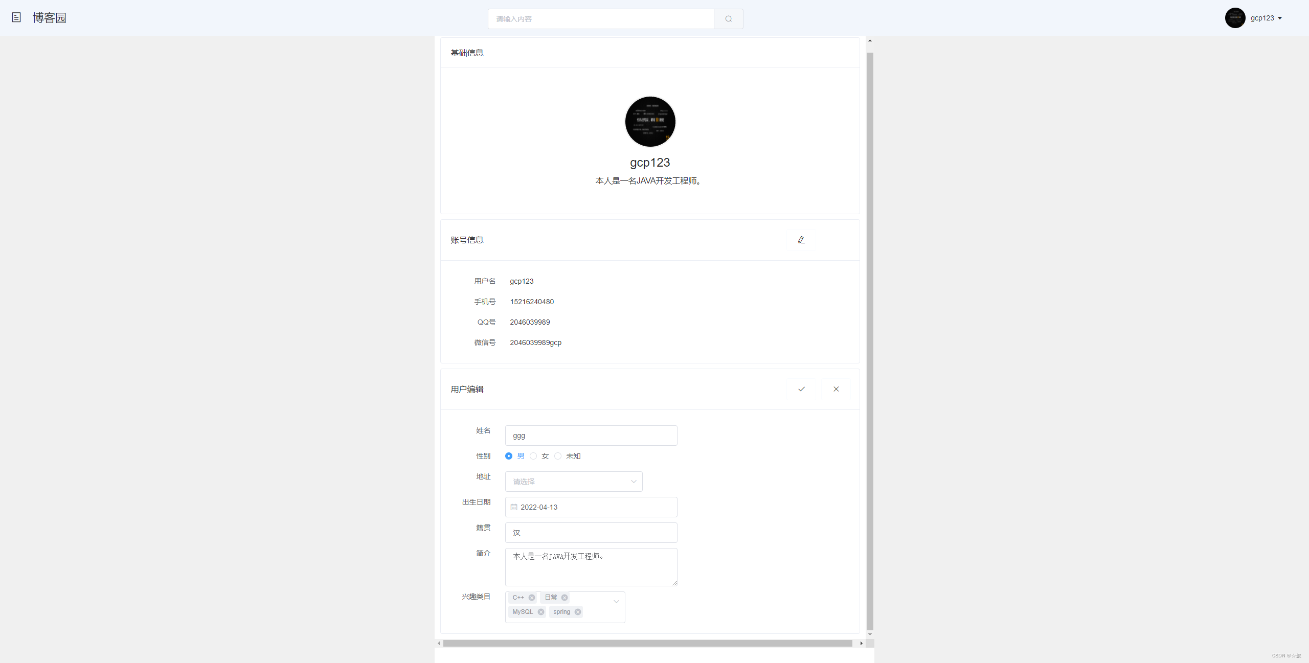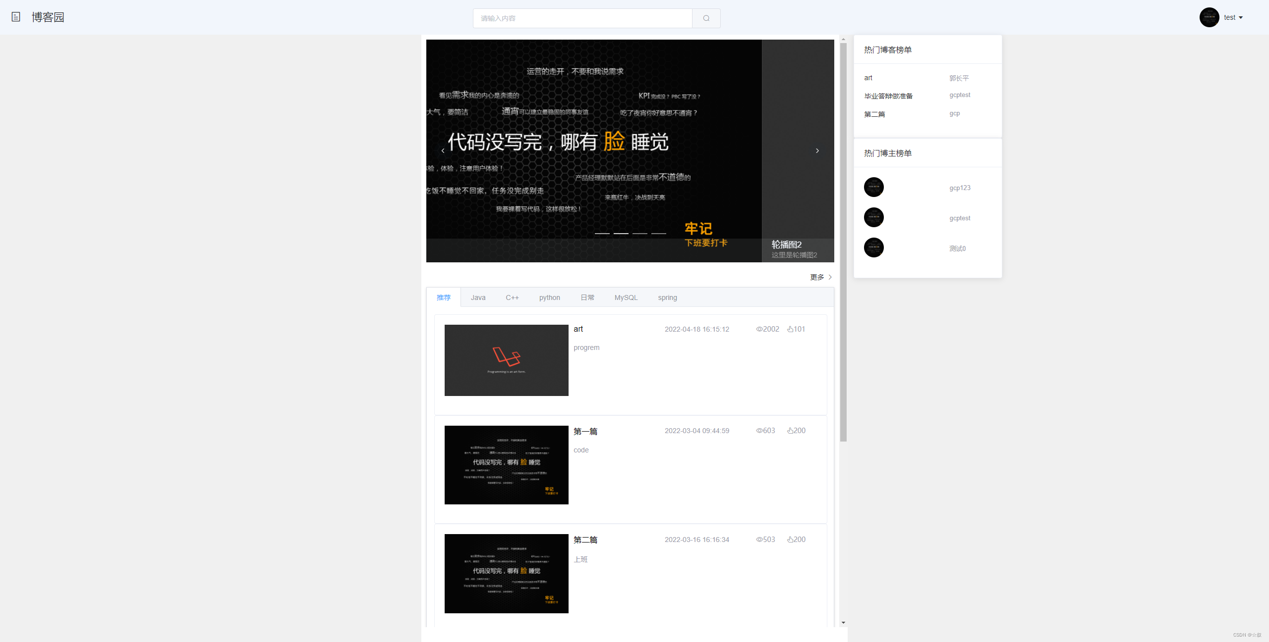 以上就是博客园系统的内容了,系统设计和开发总计耗时大概两个月,因为工作日需要上班,所以每天开发的时间不多,因此耗时长了点。总体来说,系统的功能基本上都实现了,界面还需要优化优化,因为本人是搞java开发的,因此前端的知识接触的不多,所以界面做的不太美观,后期会针对性的进行界面优化改进。