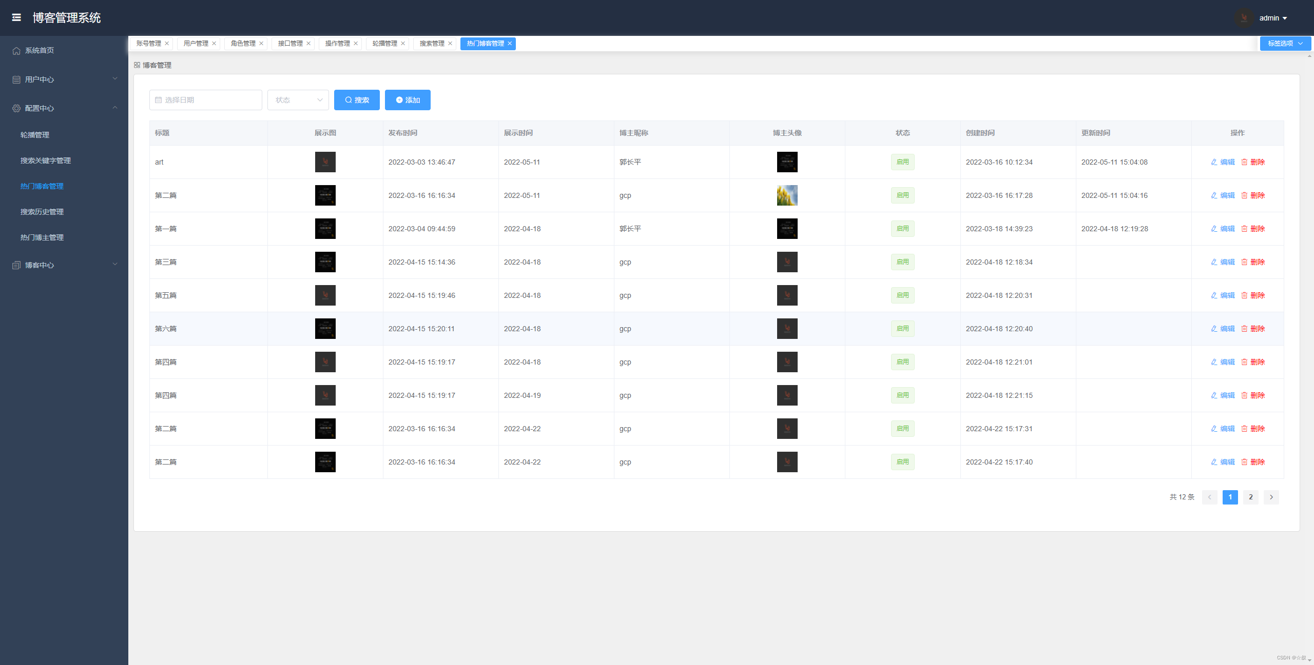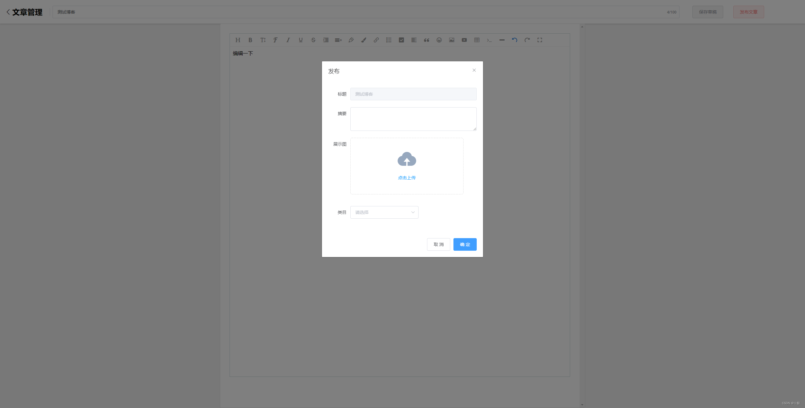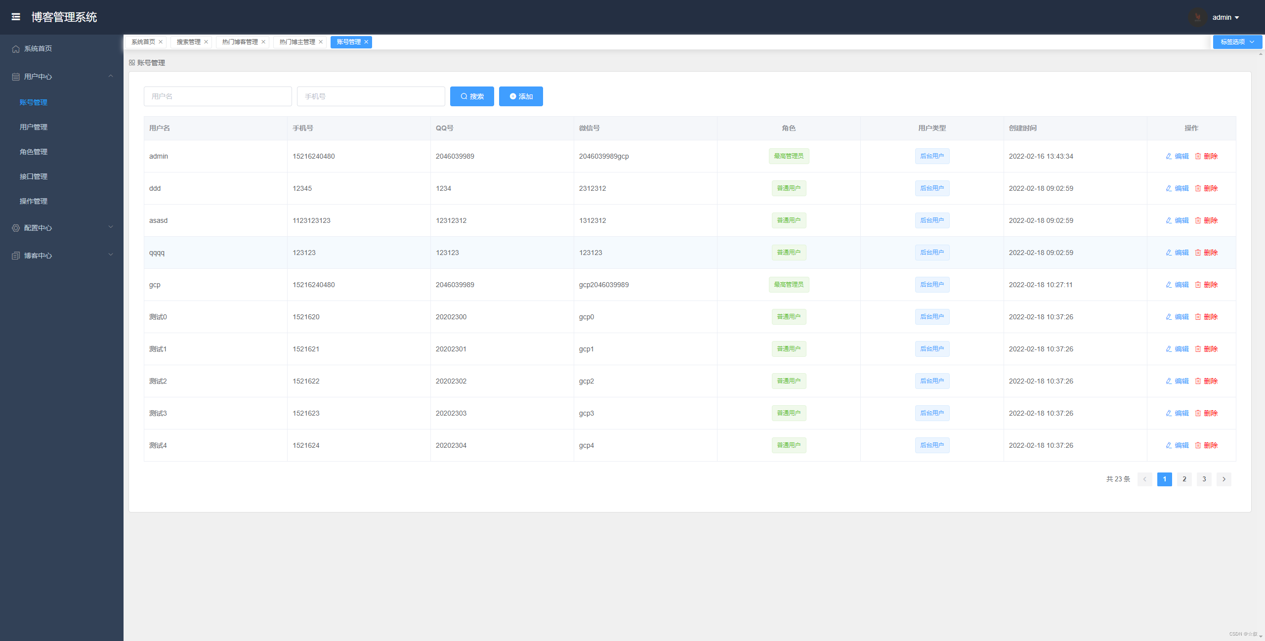 - 运行前端后台代码,运行成功后会跳转到后台登录界面,账号admin密码123456,后台就登录成功了,可以进行各种操作