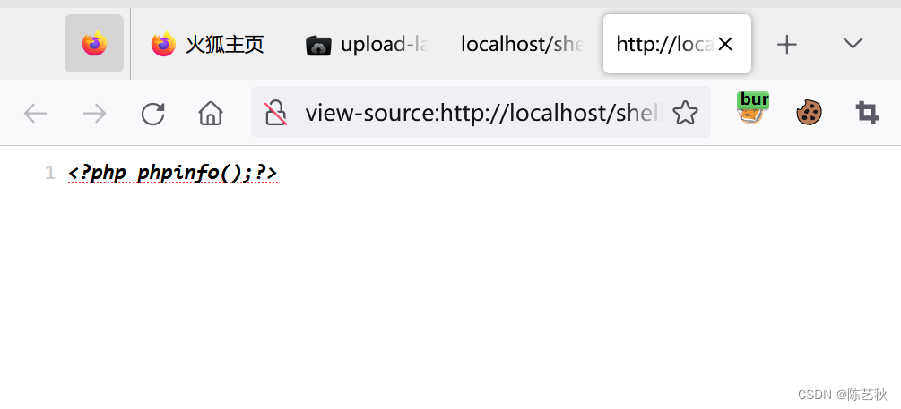 可以看到没有任何的回显,只是在源码中显示了PHP语句