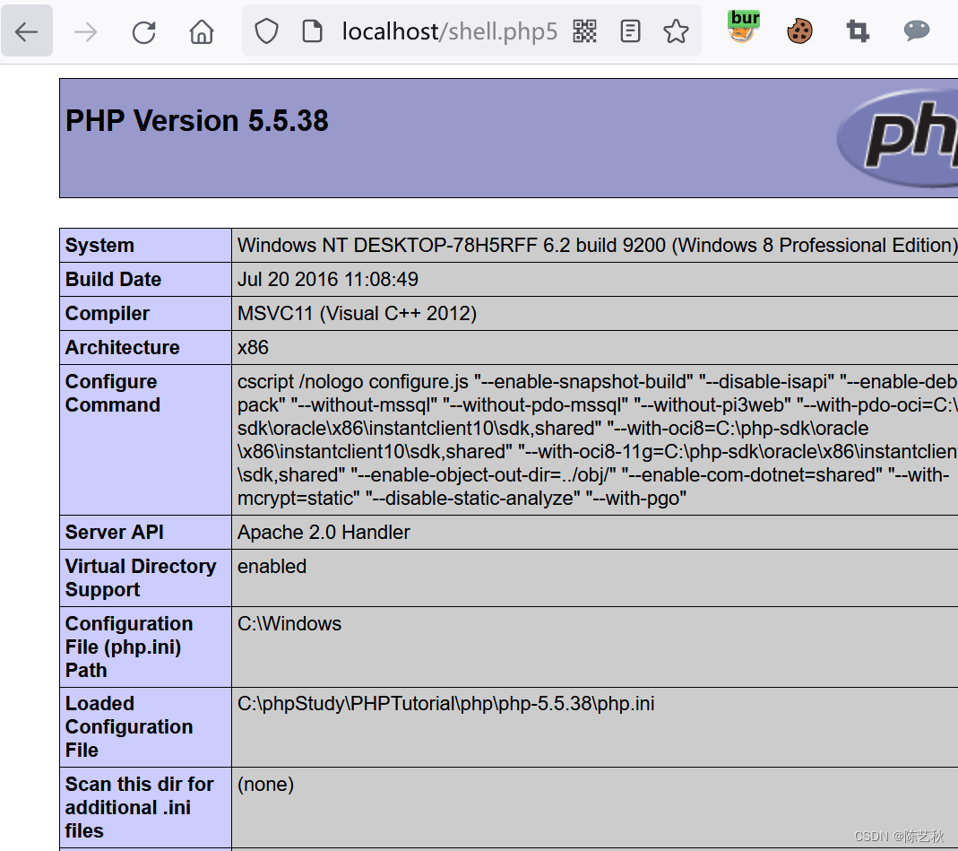 我们可以先注释掉这这段语句,然后创建一个.php5的文件去浏览器访问