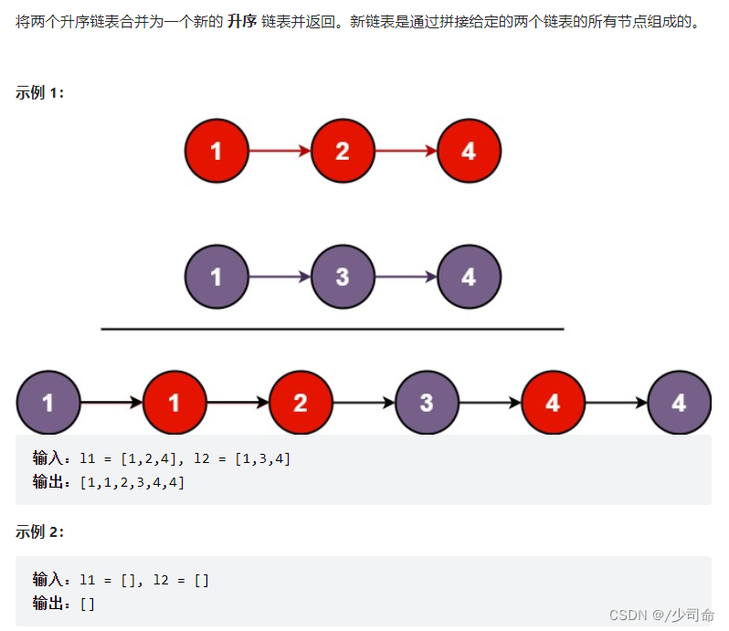 public ListNode mergeTwoLists(ListNode list1, ListNode list2) {
