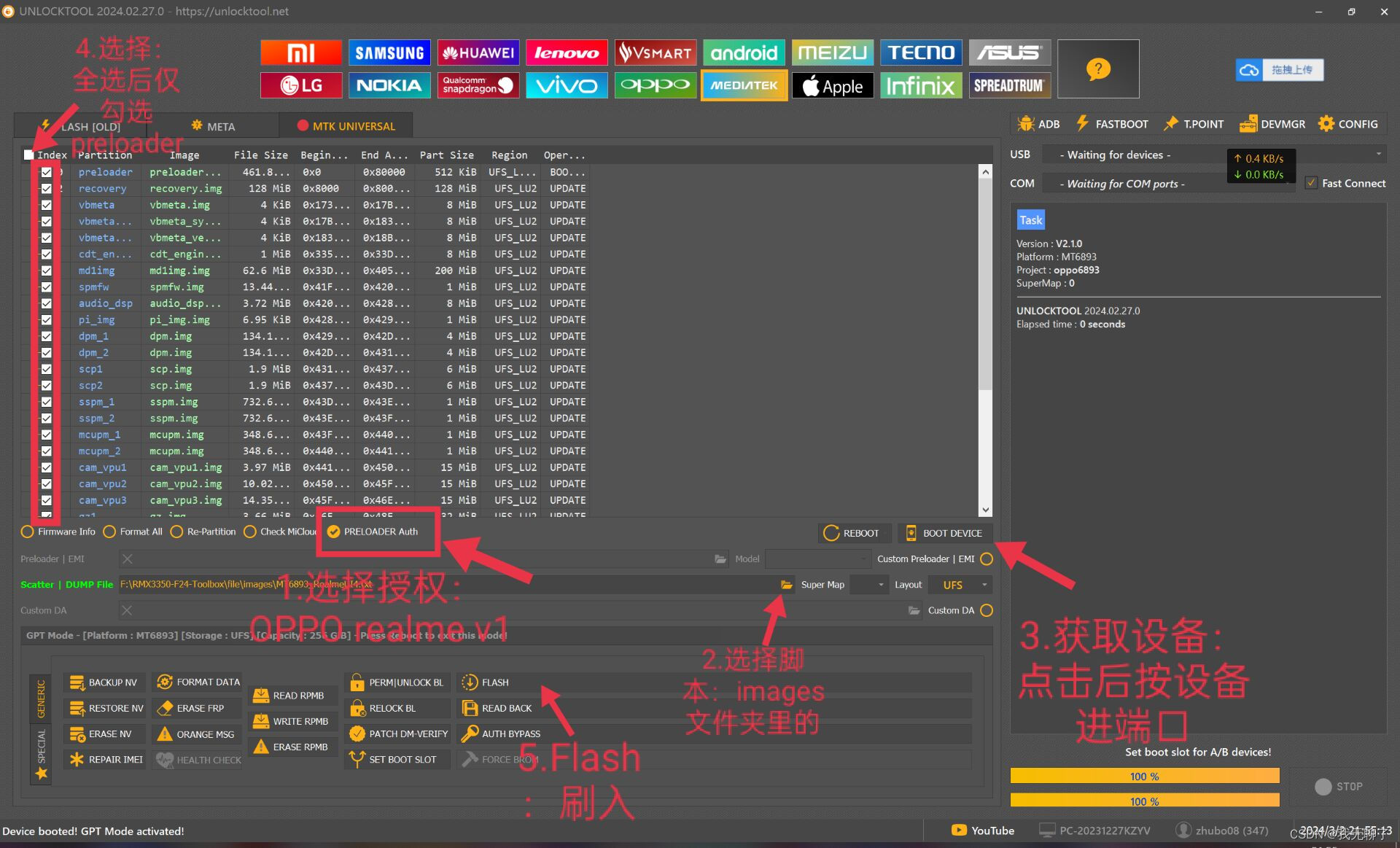 RMX3031系列-sp深刷攻略 md版 深刷端口是一次性的,每次刷失败报错之后都要重新进深刷(也就是退出再进)才能再次刷机(尽管有时端口看起来是正常的) 。重新插线是不管用的。一般刷失败之后提示无法识别的USB设备,重新进一下深刷即可解决。
